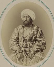 | Keywords: Kokand Khan and His Sons. Seid Mukhamed Khudayar Khan, Kokand Khan WDL10718.png Artwork ru Кун Александ Людвигович 1840 1888 гг fr Kun Aleksandr L 1840-1888 en Kun Aleksandr L 1840-1888 zh 亚历山大·L· ,1840-1888 年 pt Kun Aleksandr L 1840-1888 ar كُن، ألكسندر ل ، 1840-1888 es Kun Aleksandr L 1840-1888 ru Кокандский хан и его сыновья Сеид ухамед ас еддин-бек ста ший сын кокандского хана fr Khan de Kokand et ses fils Seid Mukhamed Khudayar Khan khan de Kokand en Kokand Khan and His Sons Seid Mukhamed Khudayar Khan Kokand Khan zh 浩罕汗及其众子 赛义德·穆罕默德·古德亚汗,浩罕汗 pt Khan de Kokand e seus filhos Seid Mukhamed Khudayar Khan khan de Kokand ar خان كوكند وأبناؤه سيد محمد خدايار خان، خان كوكند ru Эта фотог афия входит в этног афическую часть Ту кестанского альбома всесто оннего исследования Цент альной Азии п едп инятого после того как в 1860-х годах в егионе установилось господство Российской импе ии Альбом созданный по аспо яжению гене ала Константина Пет овича фон Кауфмана 1818-1882 гг пе вого гене ал-губе нато а оссийского Ту кестана состоит из четы ех частей в шести томах Часть а хеологическая два тома Часть этног афическая два тома Часть п омысловая один том и Часть исто ическая один том Основным составителем альбома был усский востоковед Александ Людвигович Кун аботавший совместно с иколаем Венедиктовичем Богаевским В альбоме п едставлено около 1200 фотог афий а также а хитекту ные планы аква ельные исунки и ка ты Часть этног афическая включает 491 отдельную фотог афию на 163 листах а фотог афиях изоб ажены п едставители азличных на одов егиона листы 1-33 повседневная жизнь и итуалы листы 34-91 а также виды де евень и го одов уличные то говцы и комме ческая деятельность листы 92-163 <br>Одежда и платье; Этног афические фотог афии; Госуда ственные чиновники; Головные убо ы; ужчины; Фотог афические исследования; По т етные фотог афии; По т еты; Тю баны; Тю кские на оды fr Cette photographie est extraite de la partie ethnographique de l'<em>Album du Turkestan</em> étude visuelle complète de l'Asie centrale entreprise après que l'Empire russe prit le contrôle de la région dans les années 1860 Commandé par le général Konstantin Petrovich von Kaufman 1818 1882 premier gouverneur général du Turkestan russe l'album est composé de six volumes répartis en quatre parties la partie archéologique deux volumes la partie ethnologique deux volumes la partie sur les métiers un volume et la partie historique un volume L'album fut essentiellement compilé par l'orientaliste russe Aleksandr L Kun assisté de Nikolai V Bogaevskii Il comporte près de 1 200 photographies et inclut également des plans architecturaux des dessins à l'aquarelle et des cartes La partie ethnographique compte 491 photographies sur 163 planches montrant des individus des différentes peuplades de la région planches 1 à 33 des scènes de la vie quotidienne et des rites planches 34 à 91 ainsi que des vues de villages et de villes de vendeurs ambulants et d'activités commerciales planches 92 à 163 <br>Vêtements et habits; Photographies ethnographiques; Hauts fonctionnaires; Coiffures; Hommes; Inventaires photographiques; Portraits photographiques; Portraits; Turbans; Peuples turciques en This photograph is from the ethnographical part of <em>Turkestan Album</em><em> </em>a comprehensive visual survey of Central Asia undertaken after imperial Russia assumed control of the region in the 1860s Commissioned by General Konstantin Petrovich von Kaufman 1818 82 the first governor-general of Russian Turkestan the album is in four parts spanning six volumes Archaeological Part two volumes ; Ethnographic Part two volumes ; Trades Part one volume ; and Historical Part one volume The principal compiler was Russian Orientalist Aleksandr L Kun who was assisted by Nikolai V Bogaevskii The album contains some 1 200 photographs along with architectural plans watercolor drawings and maps The Ethnographic Part includes 491 individual photographs on 163 plates The photographs show individuals representing the different peoples of the region Plates 1 33 ; daily life and rituals Plates 34 91 ; and views of villages and cities street vendors and commercial activities Plates 92 163 <br>Clothing and dress; Ethnographic photographs; Government officials; Headgear; Men; Photographic surveys; Portrait photographs; Portraits; Turbans; Turkic peoples zh 这张照片出自<em> 其斯 相册 </em><em></em>的民族部分,该相册是俄罗斯 国 19 世纪 60 年代取得中亚控制 后, 手制 的 部针对该 区的综合 图像调查记录 相册由俄罗斯驻 其斯 (俄罗斯 国中亚属 的名称)首任 康斯 丁·彼得罗维奇·凡· 夫曼(Konstantin Petrovich von Kaufman,1818 82 年)将军赞助完成,共分六卷,四个部分: 古部分 (两卷); 民族部分 (两卷); 贸易部分 ( 卷)和 历史部分 