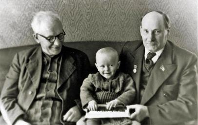 Keywords: Kolas@Maur.jpg be Янка аў і Якуб Колас азам з агульным пе шым унукам Каля 1947 года 1947 own Gruszecki other versions PD-Belarus Janka Maŭr Yakub Kolas