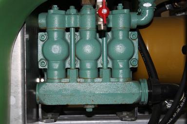 Keywords: Kolbenpumpe einer Spritze.jpg Kolbenpumpe mit drei Kolben an einer Pflanzenschutzspritze Rechts Zapfwellenanschluss gelb Own 2015-02-22 Kopiersperre <span class signature-talk ></span> PD-own Piston pumps