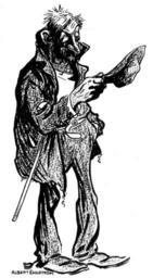 | Keywords: Kolingen fet hatt (AE 1901).png sv Kolingen betraktar drömmande sin gamla hatt Inge foder har'u Ä inge foder fÄr'u men fetare blir'u tamfan för var da Albert Engström ett konstnÀrsalbum sammanstÀllt av Sven Barthel Stockholm 1945 sida 38 Albert Engström 1901 PD-Old Kolingen |