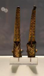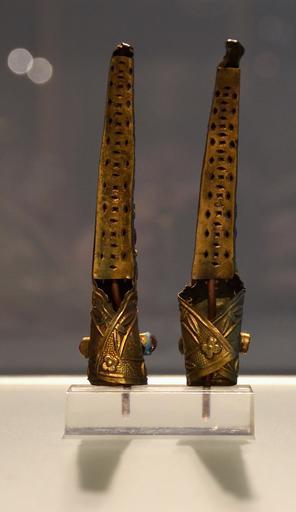| Keywords: Köln Museum für Ostasiatische Kunst 03012015 Nail Protector 3.jpg en Pair of finger nail protectors back view ; brass sheet hammered inlaid semi precious stones China Qing Dynasty 1900-1910 Museum für Ostasiatische Kunst in Cologne gift by Helga Fisher 2015-01-03 13 20 07 own Vassil other versions cc-zero Museum für Ostasiatische Kunst Köln Nails Metalwork of the Qing Dynasty Uploaded with UploadWizard Brass jewellery | ||||