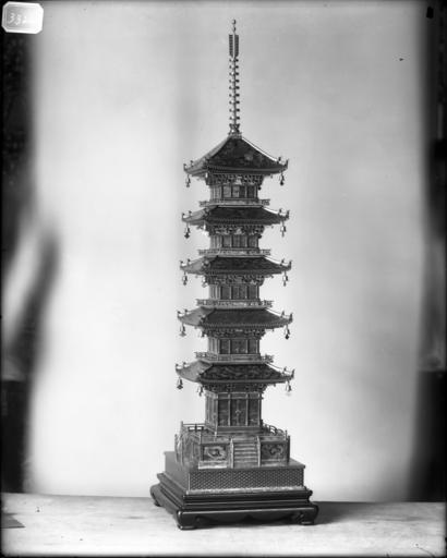 | Keywords: Komai Workshop - Okimono of a Pagoda with Famous Scenes - Walters 571567.jpg Here is a five-storied pagoda which in general form is very much like the famous 7th-century one at Horyu-ji near Nara underneath which relics of the Buddha were originally deposited But it is a pagoda transformed hardly a straightforward model On each story are doors and drawers; the pagoda has turned into a cabinet Images transform every surface into something it never was and never could be Steel gold silver and black lacquer have been combined to make vibrant pictures of a sort that might be seen on the painted sliding doors of large interior rooms On each story there are views of such attractions as Mt Fuji the Itsukushima Shrine and the Kiyomizu Temple while the roofs bear images that suggest the skies above butterflies phoenixes geese plovers herons and peacocks ca 1915 Taisho steel silver copper gold and enamel cm 111 1 accession number 57 1567 9499 The Panama-Pacific International Exposition San Francisco 1915 Henry Walters city Baltimore Walters Art Museum Henry Walters Acquired by Henry Walters 1915 Transcription Nihon kuni Kyoto ju Komai sei; Translation Made by Komai Kyoto Japan place of origin Kyoto Japan Walters Art Museum license Art of Japan in the Walters Art Museum Media from the Walters Art Museum no creator template Media contributed by the Walters Art Museum needs category review |