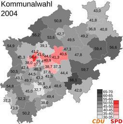 Keywords: Kommunalwahl2004NRW.svg de Wähleranteil der stärksten Partei an den Kommunalwahlen 2004 in NRW own Vinom 2009-01-14 Local elections in North Rhine-Westphalia 2004