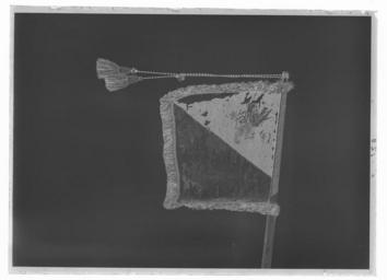 | Keywords: Kompanistandar för Västgöta tre- och femmänningar, under översten greve Gustav Fredrik Lewenhaupt - Livrustkammaren - 43208-negative.tif Förfärdigat efter Karl XII s förordning den 2 aug 1700 Duk enkel av damast gul och svart ganska trasig skarvad nedtill horisontellt Dekor diagonalt delad i två fält det övre inre svart det nedre yttre gult; i inre hörnet målat omvänt lika på båda sidor ett upprätt lejon övre halvan i brunskuggat guld nedre i mörkgrått följt av två stjärnor i svartskuggat silver Västergötlands vapen Frans dubbel i svart och gult silke fäst vid stången med tre rader tennlickor på svarta och gula band Stång av trä kannelerad; holk av mässing; doppsko av läder fastsydd <br/><br/> 4 <br/>Katalogisering Rebecka Enhörning 1976-10-05 inmatning-utskrift PAr 1996-11-06 <br/><br/>Deposition till Armémuseum januari 1997 <br/><br/>Litteratur <br/>Cederström R Svenska kungliga hufvudbanér Stockholm 1900 nr 66 original caption 1700-08-02 silk Färg svart gul material silke - wood - brass size mm 45 skarv size mm 190 lejon size mm 540 size mm 460 size mm 2910 stång size mm 62 frans LRK place of origin original filename LN_B01175_004055 53343 inventory number LRK 16777 43208 CC0 Kompanistandar för Västgöta tre- och femmänningar under översten greve Gustav Fredrik Lewenhaupt - Livrustkammaren - 43208 tif <gallery caption Different images of same object > File Kompanistandar för Västgöta tre- och femmänningar under översten greve Gustav Fredrik Lewenhaupt - Livrustkammaren - 68890 tif File Kompanistandar för Västgöta tre- och femmänningar under översten greve Gustav Fredrik Lewenhaupt - Livrustkammaren - 1197 tif </gallery> |