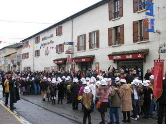 Keywords: Kon bel fêt 1.JPG fr Défilé d'enfants conscrits de Belleville Rhône -- cette fête traditionnelle se déroule chaque année dans la localité du val de Saône le dernier dimanche de février own Julien Bertrand 2007-02-25 Parades in France