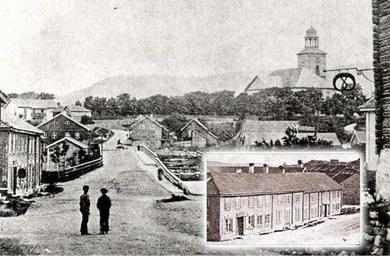| Keywords: Kongsberg nybrua 1880s.jpg Kongsberg looking over Nybrua up Klokkerbakken The church is visible in the background The inset picture shows the two left hand side buildings from another angle Some time in the 1880s before 1887 PD-old Norway in the 1880s Historical images of Kongsberg Views of Kongsberg town Kongsberg kirke Storgata bru Streets and squares of Kongsberg |