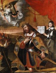| Keywords: König David vor einem Opferaltar kniend.jpg Maler des 17 Jahrhunderts in Art von Jan de Bray datiert 1658 König David vor einem Opferaltar kniend Öl auf Leinwand 106 x 81 cm Buch mit Auszug aus dem Johannes-Evangelium Kapitel 6 Vers 58 Lapsis in remedium An der Altarstufe die Stifterinschrift Wallranus de Beche/ Rethor punebat King David kneeling in front of a sacrificial altar 1658 Oil on canvas cm 106 81 unknown http //www hampel-auctions com/ other versions PD-old-100 17th-century unidentified painters 17th-century paintings location missing King David playing harp 1658 oil on canvas paintings 17th-century oil paintings of men at full length 17th-century paintings of David Ermine clothing in art Images from Hampel Auctions Paintings of men wearing crowns |