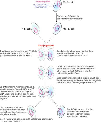 Keywords: Konjugation-hfr-ecoli.svg en Simple drawing of konjugation between hfr and f- E Coli own Lanzi 2010-09-23 Genetics Escherichia coli