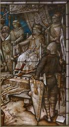 | Keywords: Konrad von Zaehringen.jpg Konrad of Zaehringen bestowing the city rights to Freiburg Konrad zu Zähringen verleiht Freiburg i Br das Stadtrecht Creator Fritz Geiges 1899 Braun- und Schwarzlotmalerei in Grisaille 115 x 62 7 cm Augustinermuseum derzeit Museum für Stadtgeschichte Freiburg im Breisgau Inv -Nr 1997/226 linker Teil eines 3teiligen Bildes photo James Steakley Other versions thumb left 200px PD-old-auto 1935 47 59 38 34 N 7 51 9 44 E scale 1563_type landmark_region DE History of Freiburg im Breisgau Conrad I Duke of Zähringen Fritz Geiges Wentzingerhaus Freiburg Stained glass windows in Freiburg im Breisgau |