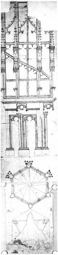 | Keywords: Konstanz Schnegg Plan.jpg Meister Antoni u Werkstatt um 1348 Entwurf zum Treppenturm im Thomaschor des Konstanzer Münsters Feder auf 2 Blatt Papier 81+30x24/20 cm Wien Akad d Bildenden Künste Kupferstichkabinett 17 028 u 17 055 Der Riss zeigt Aufriss Querschnitt und Grundriss des Schnegg im Thomaschors Vorbild des Bauwerks ist wohl ein nicht mehr existenter Treppenturm am Schloss von Bourges das Meister Antoni Priester und Architekt gekannt haben muss PD-Art Cathedral of Constance Gothic architectural elements Drawings of staircases Artworks missing infobox template |