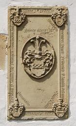 | Keywords: Konstanzer Kirche Grabplatte (1).jpg Konstanzer Kirche in Ditzingen Grabplatte Friedrich von Janowitz eingelassen in die Wand neben dem Eingang an der Südseite mit Ahnenwappen Janowitz Stockheim Sternenfels Hilchen von Lorch Ditzingen Baden-Württemberg Germany Tomb slab embedded in the wall beside the entrance on the south side Église Konstanz à Ditzingen Allemagne Dalle funéraire incrustée dans le mur derrière l'entrée sud own Harke 2009-07-05 48 49 34 35 N 9 4 3 58 E zoom 17 QualityImage Konstanzer Kirche Ditzingen Quality Images by User Harke Quality images of Landkreis Ludwigsburg Reliefs in Landkreis Ludwigsburg Coats of arms of Janowitz family Coats of arms of Stockheim family Coats of arms of Sternenfels family Coats of arms of Hilchen family Reliefs of coats of arms in Landkreis Ludwigsburg |