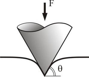 Keywords: Kontakt Kegel Ebene.jpg en Contact between a Rigid Conical Indenter and an Elastic Half-Space de Kontakt zwischen einem Kegel und einem elastischen Halbraum own Valentin Popov 2008-12-18 Contact mechanics