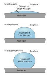 Keywords: Kontaktwinkel - Typen.svg de Standardfälle bei Kontaktwinkelmessungen mit Wasser und zuordnung der Oberflächeneigenschaft own Cepheiden 2010-07-14 file Surface tension svg Surface tension diagrams