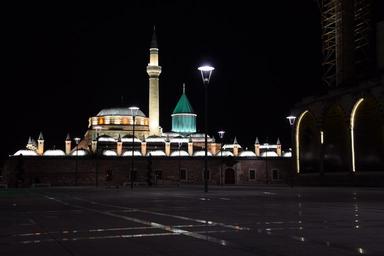 Keywords: konya mevlana museum islam religion landmark night darkness lights turkey