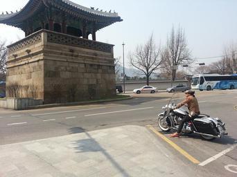 Keywords: korea seoul korean architecture asian south landmark travel urban cityscape scene traditional building motorcycle