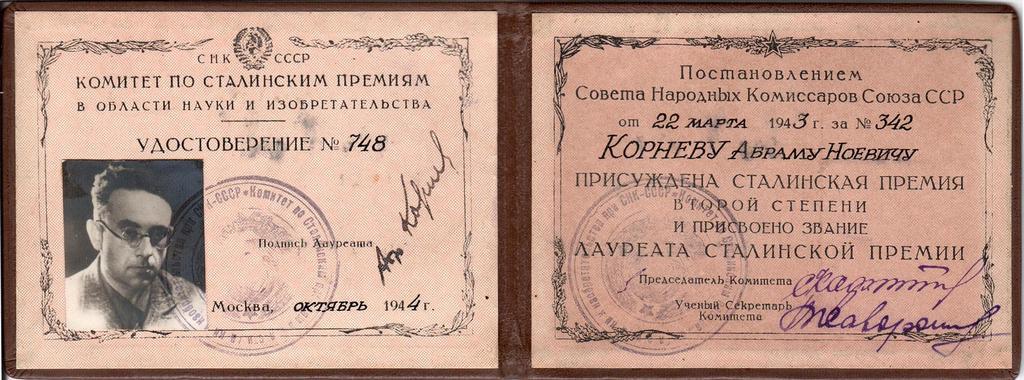 Keywords: Kornev U.jpg ru Отскани ованное удостове ение сталинского лау еата own Kulturdorf 1944 Stalin Prize winners Geologists from Azerbaijan People of Baku Documents in Russian Documents of the Soviet Union