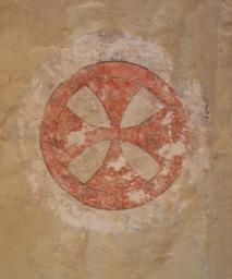 Keywords: Kors Slidredomen.JPG en Consecration cross in the shape of a Cross pattée in a circle on interior wall of mediaeval Slidredomen church Vestre Slidre Norway Own Roede 2008-06-05 Consecration crosses in Norway Slidredomen Vestre Slidre