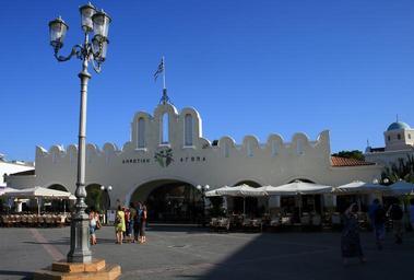 Keywords: Kos market Agora 2.jpg Kos on Kos island Greece Kós na ostrově Kós Řecko own Karelj 2009-08-15 36 53 38 74 N 27 17 31 36 E Dimotiki Agora Kos Cafés in Kos Parasols in Kos Street lights in Kos 2009 in Kos 0815 August 2009 in Greece 15