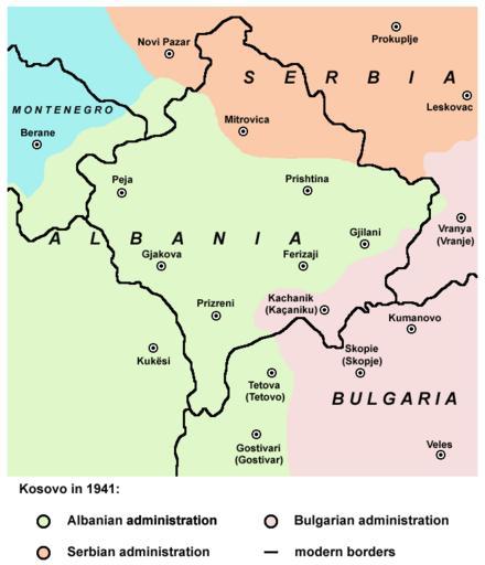 | Keywords: Kosovo 1941.png English Division of modern-day territory of Kosovo between Axis states in 1941 2009-06-02 own assumed PANONIAN self-made map by user PANONIAN References Istorijski atlas Geokarta Beograd 1999 Denis Šehić - Demir Šehić Istorijski atlas Sveta Beograd 2007 Školski istorijski atlas Zavod za izdavanje udžbenika SR Srbije Beograd 1970 Sve srpske mape - od šestog veka do Pariza Specijalno izdanje BLICA Decembar 1995 godine The Times History of Europe Times Books London 2002 Richard Overy The Times History of the 20th Century Times Books London 2004 Dr Tomislav Bogavac Nestajanje Srba Niš 1994 Noel Malcolm Kosovo - A Short History London 2002 Džon R Lempi Jugoslavija kao istorija Beograd 2004 Tim Džuda Srbi istorija mit i razaranje Jugoslavije Beograd 2003 Fransisko Veiga Balkanska zamka 1804-2001 Beograd 2003 Petrit Imami Srbi i Albanci kroz vekove Beograd 2000 Peter Bartl Albanci Clio Beograd 2001 Valter Manošek Holokaust u Srbiji Beograd 2007 Nenad Stefanović Jedan Svet na Dunavu Beograd 2003 http //terkepek adatbank transindex ro/kepek/netre/257 gif http //www marxists org/subject/yugoslavia/images/maps/1941-dismemberment jpg http //lh6 ggpht com/_WzQWv26EoIc/RlYxZ8QcGHI/AAAAAAAAAHw/poEpEv_g_0o/YU-Nazi-division jpg http //www svetskirat net/slike/razbijanje/zazbijanje_jugoslavije_1941 jpg http //anamnesis info/resources/Albania_during_WW2 gif http //tenc net/kosovomap jpg Maps of the history of Kosovo in modern times Maps of Yugoslavia during World War II Maps of Albania during World War II Maps of Serbia during World War II Maps of Bulgaria during World War II Kosovo in World War II |