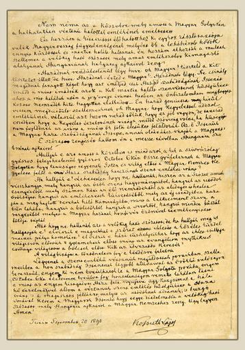Keywords: Kossuth written text arad speech.jpg hu Kossuth saját kézzel Ãrt beszéde az aradi emlékmű avatására http //mek oszk hu/kiallitas/kossuthhangja/html/nyito htm http //www americanhungarianfederation org/images/AHFHistory/kossuth_written_text_arad_speech jpg Lajos Kossuth 1890 Nem néma az a kÅ‘szobor mely amott a magyar Golgotán a halhatatlan vértanú halottak emlékének emeltetett Én hozzám a kitaszitott élÅ‘ halotthoz ki egykor zászlótartója valék Magyarország függetlenségének melyért Å‘k a lehóhérolt hÅ‘sök annyit küzdöttek és mártir halált haltanak én hozzám elhozták a multak szellemei a velÅ‘kig ható szózatot mely amaz emlékszobor kimagasló alakjának Hungariának halgatag ajkairol zeng žHazádnak rendületlenül légy hive oh magyar tiszteld a kit tisztelet illet de hive Hazádnak érted e magyar Hazádnak légy Ne csinálj magadnak faragott képet hogy azt imádjad csak Hazád szabadságának Istenét imádd a mint imádták azok a kik mártÃr halált szenvedtenek hűségükért ahoz a mit haláluk után a jog ereje iránti hitben az önbizalomban megfogyatkozott nemzedék hite hagyottan elalkudott Én hazád géniusza hirűl vittem megdicsőült szellemeknek oh magyar hogy kegyelettel adózol emléküknek válaszúl azt hozom neked tÅ‘lük hogy ez jól vagyon de tartsad eszedben hogy a Kegyelet érzelmeinek virága meddÅ‘ szóvirág volna ha hűsége nem fejlÅ‘dnék az iránt a miért Å‘k földi életüket feláldozák Az Å‘ Istenük a magyar haza szabadságának Istene annak oltárához várják a magyart E szózat zengését hallom én a messze távolban Hungaria szobrának ajkairol Hallják e ezt amott a közelben is mind azok a kik a szivrázólag gyászos felejthetetlenül gyászos October 6kán összegyülekeznek a magyar Golgotán hogy tanúságot tegyenek Isten és világ elÅ‘tt a magyar nemzet Kegyelete felÅ‘l a Haza szabadság harczának szent emlékei iránt Ha hallják e Lehetetlen hogy ne hallanák; hiszen az a Szózat annak visszhangja mely hangzik az Å‘sök szent hagyományaibol hangzik az utódok esengésébÅ‘l mely számon kéri az élÅ‘ nemzedéktÅ‘l az elidegenithetetlen örökséget hangzik az emlékezesek lüktetésébÅ‘l mely az éj csendjében haza jár a meghajlott derekak háló kamarájába mint a lelkiismeret szava a bűn lakába; hangzik a bölcsÅ‘kböl hangzik a sirokból hangzik minden fűszál rezgésébÅ‘l melyet a magyar hazának honfivér özönével termékenyitett földje táplál Hát hogy ne hallanák azt a velÅ‘kig ható szózatot; de ha hallják meg is hallgatják e elviszik e magukkal e szózat ihletét a közélet küzdelmeinek pálya homokára elviszik e házi tüzhelyeikhez hogy az ihlet csillaga világitson elÅ‘ttük a gyermekeik elÅ‘tt mint az evangéliom mythikus csillaga világitott a bölcsek elÅ‘tt kik az idvezitÅ‘t keresék Hangfelvétel innen A világ birája a történelem fog e kérdésre felelni Legyenek a szentemlékű vértanúk megáldottak poraikban szellemeikben a hon szabadság Istenének legjobb áldásaival az örökké valóságon keresztűl; engem ki nem borúlhatok le a magyar Golgota porába engem October 6ka térdeimre borúlva fog hontalanságom remete lakában látni a mint az engem kitagadott Haza felé nyujtva agg karjaimat a hála hÅ‘ érzelmével áldom a vértanúk szent emlékét hűségükért a Haza iránt 's a magasztos példáért melyet az utódóknak adtanak; 's buzgó imával kérem a magyarok Istenét hogy tegye diadalmassá a velÅ‘kig ható szózatot mely Hungária ajkairol a magyar nemzethez zeng Úgy legyen Amen Turin September 20 1890 Kossuth Lajos PD-old Lajos Kossuth The 13 Martyrs of Arad Freedom monument Arad Emigrants from Hungary Signatures of Lajos Kossuth Handwriting in Hungary Letters of Hungary |