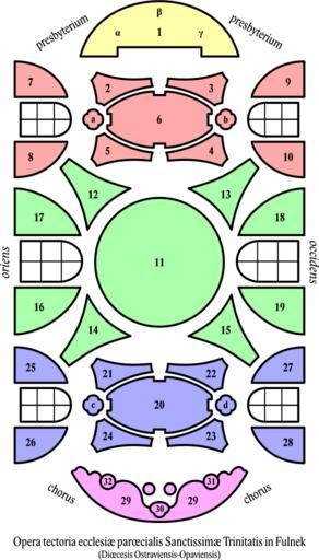 | Keywords: Kostel NejsvÄ›tÄ›jšà Trojice (Fulnek) – frs-000-k.svg Schema rozloženà nástropnÃch fresek v lodi kostela NejsvÄ›tÄ›jšà Trojice ve Fulneku ÄŒesko Evropa Scheme of ceiling fresco composition in the bay of the Most Holy Trinity Church in Fulnek Czechia Europe Skemo de plafonfreska kompono en la navo de la kirko de la Plej Sankta Triunuo en Fulnek ĈeÄ¥ujo EÅropo VolnÄ› pÅ™ekresleno ze starého obrázku neznámého autora Freely redrawn secundum an old image by unknown author Libere desegnita laÅ malnova bildo de nekonata aÅtoro created with Inkscape 2009-12-27 User Petrus Adamus/author barevné rozdÄ›lenà - colour parting - kolora dispartigo Kostel_NejsvÄ›tÄ›jÅ¡Ã_Trojice_ Fulnek _ “_frs-000 svg Skica rozloženà nástropnÃch fresek PÅ™ekresleno ze starého schematu neznámého autora 2007-12-31 PAD </nowiki> Uploaded with derivativeFX Frescos of the Most Holy Trinity Church Fulnek Plans of churches in the Czech Republic |