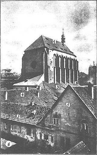 | Keywords: Kostel Panny Marie Sněžné, 1930.jpg cs Pohled na kostel a konvent Panny Marie Sněžné v Praze z roku 1930 1930 František Klement Minařík OFM Pražští mučedníci Serafín Bratislava 1991 str 6 neznámý 1930 ; unknown 1930 legenda 1 kostel 2 schody nad klenbou kostela 3 kaple Panny Marie sv Michaela 4 tehdejší noviciát 5 konvent 6 nádvoří PD-Art Fourteen Prague Martyrs Church of Our Lady of the Snow Prague Uploaded with UploadWizard | ||||
