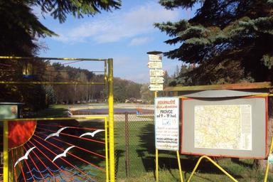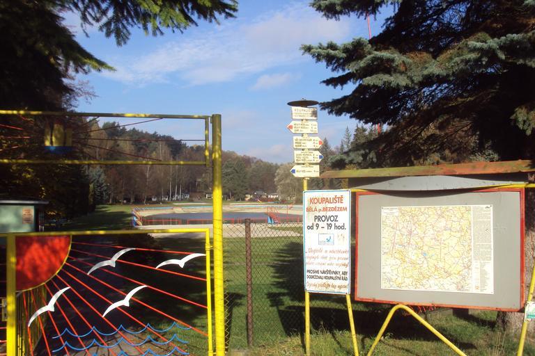 Keywords: Koupaliště v Bělé 1.JPG cs Koupaliště v Bělé u vchodu own Zákupák 2013-10-19 Koupaliště Bělá Hiking and footpath fingerposts in Mladá Boleslav District