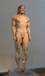 | Keywords: Kouros NAMA 3851 Athens Greece.jpg en Kroisos Kouros Parian marble Found in Anavyssos Attica This is a funerary statue found on the grave of Kroisos as is indicated by the epigram on the base Stop and mourn at the grave of the dead Kroisos whom the raging Ares destroyed when he fought among the defenders Ca 530 BCE N°3851 fr le kouros de Kroisos Marbre parien Trouvé à Anavyssos attique Statue funéraire sur la base de laquelle on peut lire Arrête-toi et pleure sur la tombe du défunt Kroisos dont Arès le rageur a pris la vie alors qu'il combattait contre les défenseurs Vers 530 av J -C institution National Archaeological Museum of Athens N°3851 2015-05-20 15 40 45 own Jebulon other versions cc-zero Uploaded with UploadWizard Kroisos Kouros Quality images by Jebulon QualityImage |