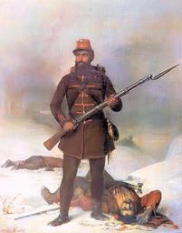 | Keywords: Kovacs Mihaly Vorossipkas 1848.jpg Artwork Creator Mihály Kovács 1848 Oil on canvas Size cm 37 47 5 Institution Museum of Military History Budapest Fine Arts in Hungary http //www hung-art hu/kep/k/kovacs/muvek/1/kovac111 jpg http //www hung-art hu/frames-e html /english/k/kovacs/muvek/1/kovac111 html PD-old-100 Other versions Historical uniforms Paintings by Mihály Kovács Paintings in the Museum of Military History Budapest History paintings in Hungary 1848 paintings in Hungary Soldiers of the 1848-49 war of independence Revolution and war of independence 1848-49 in art |