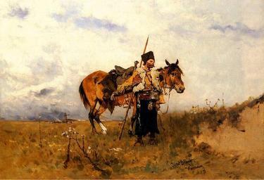 | Keywords: Kozak na stanowisku.jpg Artwork Creator Józef Brandt Cossack on duty Probably set in the 16th-17th century oil canvas cm 26 37 5 object history credit line signed Jozef Brandt / Warszawy lower right accession number unknown 200px PD-old-auto 1915 Zaporozhian Cossacks by Józef Brandt History of cavalry through painting Paintings of men with horses Paintings of Cossacks |