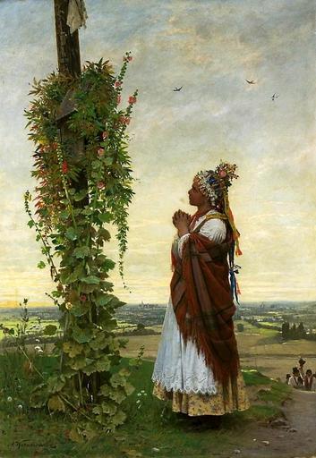 | Keywords: Kozakiewicz Peasant girl before a shrine.jpg Artwork Creator Antoni Kozakiewicz 1894 oil canvas cm 120 5 85 Institution National Museum Warsaw Not on view accession number MP 445 object history credit line A Kozakiewicz signature http //cyfrowe mnw art pl/dmuseion/docmetadata id 8902 cyfrowe mnw art pl See below 1929 DEFAULTSORT 1894; Peasant girl before a shrine Antoni Kozakiewicz Realist paintings in the National Museum in Warsaw 19th-century Polish paintings in the National Museum in Warsaw 1894 oil on canvas paintings 19th-century oil paintings of standing women at full length National costume of Poland in art Paintings of Polish peasants Reverences Wayside shrines in art |