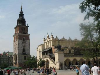 Keywords: Kraków 127.jpg Sukiennice in Kraków Poland Own 2007-07 Rj1979 Renaissance architecture Sukiennice South Side Remote views of Town Hall Tower in Kraków