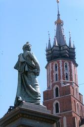 Kraków - St. Mary tower and Mickiewicz monument.jpg (1360x2048)