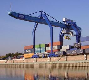 Keywords: Kran Muehhlauhafen 02.jpg en Port of Mannheim Germany Own Immanuel Giel 2008-09 Mühlauhafen Port cranes in Mannheim