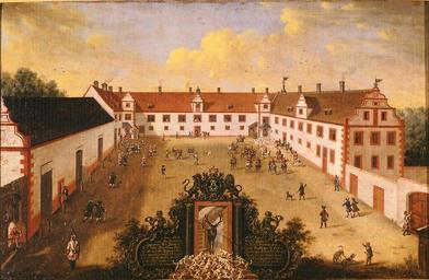 Keywords: Kranichstein 1760 1.jpg Artwork Creator Georg Adam Eger ~ 1760 oil canvas cm Museum Jadschloss Kranichstein object history credit line accession number http //www lagis-hessen de/de/subjects/idrec/sn/oa/id/2354 Hessisches Landesamt für geschichtliche Landeskunde PD-old-100 Georg Adam Eger Jagdschloss Kranichstein 1760 in Darmstadt 1760s paintings