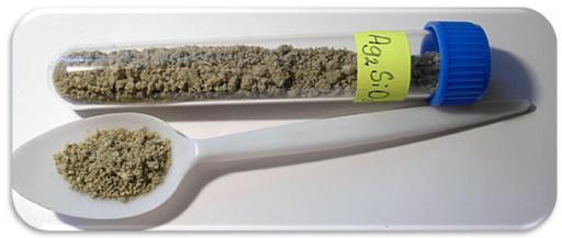 Keywords: Křemičitan stříbrný.PNG Křemičitan stříbrný - Ag SiO Vlastní sbírka 2007-06-09 Ondřej Mangl Není nutno Metasilicates Silver compounds Samples of checmical compounds