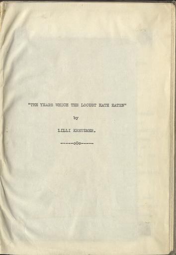 | Keywords: monochrome Description: "The Years Which the Locust Hath Eaten" is a bound typescript, with a brief handwritten addendum. The narrative covers approximately the period from 1936 to 1940, and describes the events and thoughts leading to the Kretzmer family's decision to leave Nazi Germany, their stay in England, and their arrival in the United States. The volume includes two postcards and 13 photographs, most of buildings and landscapes in places that the Kretzmers visited or in which they stayed. Repository: Schlesinger Library on the History of Women in America. Collection: Lilli Cohen Kretzmer Papers Call Number: MC 379 Catalog Record: id.lib.harvard.edu/aleph/001366809/catalog Questions? Ask a Schlesinger Librarian Description: "The Years Which the Locust Hath Eaten" is a bound typescript, with a brief handwritten addendum. The narrative covers approximately the period from 1936 to 1940, and describes the events and thoughts leading to the Kretzmer family's decision to leave Nazi Germany, their stay in England, and their arrival in the United States. The volume includes two postcards and 13 photographs, most of buildings and landscapes in places that the Kretzmers visited or in which they stayed. Repository: Schlesinger Library on the History of Women in America. Collection: Lilli Cohen Kretzmer Papers Call Number: MC 379 Catalog Record: id.lib.harvard.edu/aleph/001366809/catalog Questions? Ask a Schlesinger Librarian |