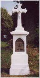 | Keywords: Kreuzheddert.jpg Das Wegkreuz an der Ortsausfahrt nach Heddert An der Ortsausfahrt nach Heddert steht auf der linken Straßenseite ein hohes Steinkreuz Auf dem Mittelteil das auf zwei Unterblöcken steht die durch schmale an den Seiten geschwungene Steinplatten abgegrenzt sind steht innerhalb eines Spizbogens in dessen Winkeln links und rechts Blattverzierungen angebracht sind die Inschrift Psalm 41-13 Gelobt sei Jesus Christus - Ich der Herr dein Gott bin es der deine Hand faßt und zu dir spricht Fürchte dich nicht ich helfe dir - Familie Wilh Theis à ber dem Mittelteil sind auf einer schmalen nach außen schwungvoll gebogenen Platte Blattverzierungen in einer Reihe ausgehauen Darüber erhebt sich auf einem dachartigen Stein das hohe Abschlusskreuz dessen Balkenenden sich dreigliederig auflösen das Kreuz wurde 1919 von den Familien Michel Theis- Becker und Steinbach- Lauer zum Dank der glücklichen Heimkehr aus dem Ersten Weltkrieg aufgestellt Im zweiten Weltkrieg wurde es zerstört Im Jahre 1950 ließen Willibrod und Maria Theis geb Körtels das Kreuz aus Dankbarkeit über die Geburt ihres dritten Kindes Klara das Maria Theis im Alter von 43 Jahren gebar wieder errichten Ihnen war 2 Jahre zuvor ein Junge wenige Stunden nach der Geburt gestorben Die Marmorplatte mit der Inschrift wurde in Koblenz angefertigt und kostete damals 50 DM Bernd Hinz Hamm 2006-10-19 Bernd Hinz Hamm PD-release Original upload log de wikipedia Nachcommonsverschieber CommonsHelper de wikipedia Kreuzheddert jpg 2006-10-19 18 42 Hinz666 148×293× 19540 bytes <nowiki>Fotograf Hinz</nowiki> Crucifixes Hinzenburg Psalm 41 Inscriptions referencing Psalms 040 |