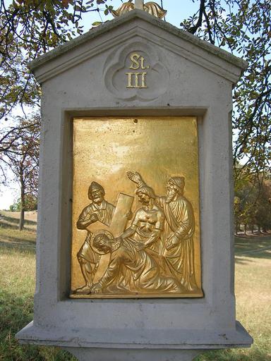 | Keywords: Kreuzweg Frauenberg (Eichstätt) -03.jpg  Frauenbergkapelle 14 Bildstöcke ehemals mit Gusseisenreliefs 1856; in ab 1875 angepflanzter Kastanienallee own WaldiWuff 2012-08-15 Kreuzweg Frauenberg Eichstätt 03 Station 3 Jesus falls the first time Germany Bavaria Eichstätt Cc-zero |