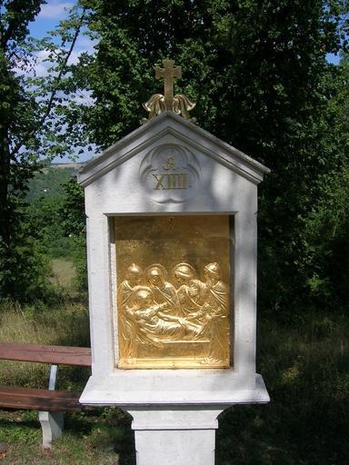| Keywords: Kreuzweg Frauenberg (Eichstätt) -14.jpg  Frauenbergkapelle 14 Bildstöcke ehemals mit Gusseisenreliefs 1856; in ab 1875 angepflanzter Kastanienallee own WaldiWuff 2012-08-15 Kreuzweg Frauenberg Eichstätt 14 Station 14 Jesus is laid in the tomb and covered in incense Germany Bavaria Eichstätt Cc-zero |