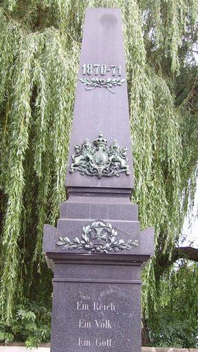 | Keywords: Kriegerdenkmal Altrip 01.jpg  Kriegerdenkmal Altrip mit der Inschrift Ein Reich Ein Volk Ein Gott Franco-Prussian War memorial of Altrip Germany own own photography 2007-07 Immanuel Giel 9 July 2007 ImageNote 1 409 1040 95 100 913 1622 2 Eisernes Kreuz von 1870 mit dem Monogramm König Wilhelms I von Preußen Iron Cross 1870 ImageNoteEnd 1 ImageNote 2 314 596 295 233 913 1622 2 Wappen des Königreichs Bayern Coats of arms of the Kingdom of Bavaria ImageNoteEnd 2 ImageNote 3 331 1370 233 238 913 1622 2 Em Reich Em Volk Em Gott ImageNoteEnd 3 ImageNote 4 385 282 190 79 913 1622 2 1870-71 ImageNoteEnd 4 Cultural heritage monuments in Altrip War memorials in Rhein-Pfalz-Kreis Franco-Prussian War memorials in Rhineland-Palatinate Coats of arms of the Kingdom of Bavaria |