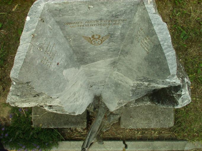 Keywords: Krimice memorial to killed American airmen.JPG en Křimice - memorial to killed American airmen cs Křimice - památník padlým americkým letcům own Jik jik 1 6 2003 I am sorry for the visible retouching in the left and right bottom corners There were my boots in the picture FoP-Czech Republic Křimice World War II memorials in Plzeň-City District Sculptures in Plzeň |