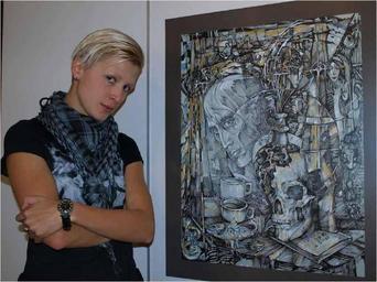 Keywords: Kristina Zieber.jpg en Kristina Zieber at her exhibition in Merseburg Februar 2013 own König Etzel 2013-04-01 Painters from Russia Graphic arts Cc-zero