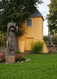 Keywords: Kriukai varpine.JPG lt Kriukų bažnyčios varpinė Joniškio raj en Belfry in Kriukai Joniškis District Lithuania own DykumuUgnis 2010-09-03 Church of Saint Lawrence in Kriukai Sculptures of the Pensive Christ in Lithuania