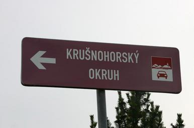 Keywords: Krušnohorský okruh.JPG cs Značení Krušnohorského okruhu v okrese Most own Hadonos 6 7 2009 Hiking and footpath fingerposts in Most District