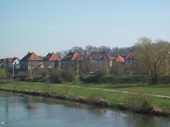 Keywords: Krzyżna Góra (Kłodzko).jpg pl Widok na osiedle Krzyżna Góra od strony Nysy Kłodzkiej own Łukasz Kuchta 2010-05-07 Nysa Kłodzka in Kłodzko
