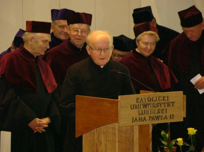 Keywords: Ks. Bartnik.JPG pl Ks prof Bartnik podczas otrzzymana Medalu za zasługi dla KUL Own Leszek Stojanowski-Han 2 04 2009 Czesław Bartnik