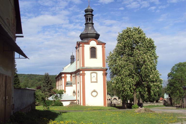 Keywords: KŠ K2.JPG cs Kostel od náměstí Míru own Zákupák 2012-05-11 50 46 36 737 N 14 28 8 623 E region CZ Church of the Nativity of Saint John the Baptist Kamenický Šenov Church towers in Liberec Region