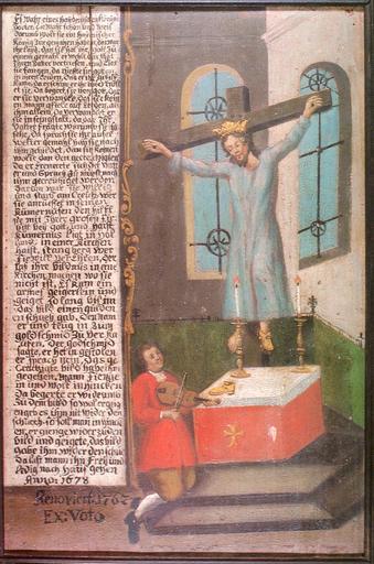 | Keywords: Kuemmernis museum schwaebischgmuend.JPG St Kümmernis 1678 Tafel im Städtischen Museum Schwäbisch Gmünd Source Peter Spranger Der Geiger von Gmünd ²1991 p 25 PD-old-100 Saint Wilgefortis 1678 paintings String instruments in art Historic views of Schwäbisch Gmünd Artworks missing infobox template |