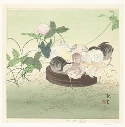 | Keywords: Kuikens-Rijksmuseum RP-P-1961-151.jpeg accession number RP-P-1961-151 Anonymous credit line GWToolset Rijksmuseum nl Kuikens etend uit een bruine ronde schaal; op de achtergrond een winde met een roze bloem Label Line possibly Jakuun 1900 - 1910 kleurenhoutsnede; lijnblok in zwart met kleurblokken Collection prenten; Japan collectie blad Height mm 244 blad Width mm 250 exhibition history paper object history Acquisition 1961 object type PD-US PD-old Data and photography rights All data and all images made available through the API are either in the public domain or are subject to a CC0 license https //www rijksmuseum nl/en/api/terms-and-conditions-of-use cc-zero place of creation Japan http //www rijksmuseum nl/collectie/RP-P-1961-151 http //hdl handle net/10934/RM0001 COLLECT 47564 handle Kuikens Uploaded with GWToolset Rijksmuseum RP-P-1961-151 http //www rijksmuseum nl/media/assets/RP-P-1961-151 Images uploaded by Fæ Japanese 20th-century prints in the Rijksmuseum Amsterdam Images from the Rijksmuseum |